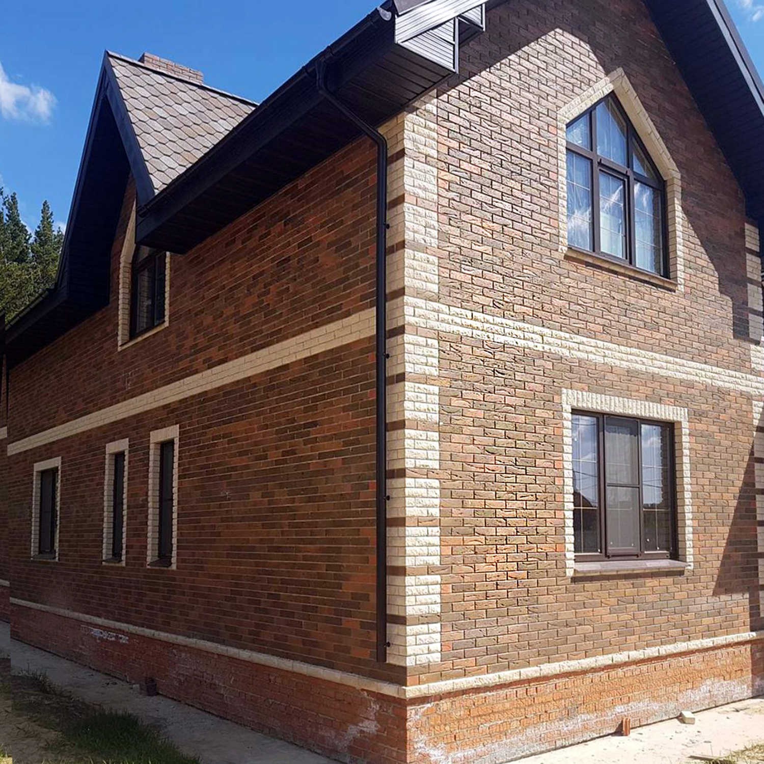 Облицовочный кирпич БРАЕР Баварская кладка "кора дуба" сочетает традиционное немецкое качество с выразительной древесной фактурой. Коллекция выполнена в характерной палитре BRAER с плавными переходами от светлых бежевых до насыщенных коричневых оттенков, с рельефной поверхностью, точно имитирующей натуральную древесную кору.