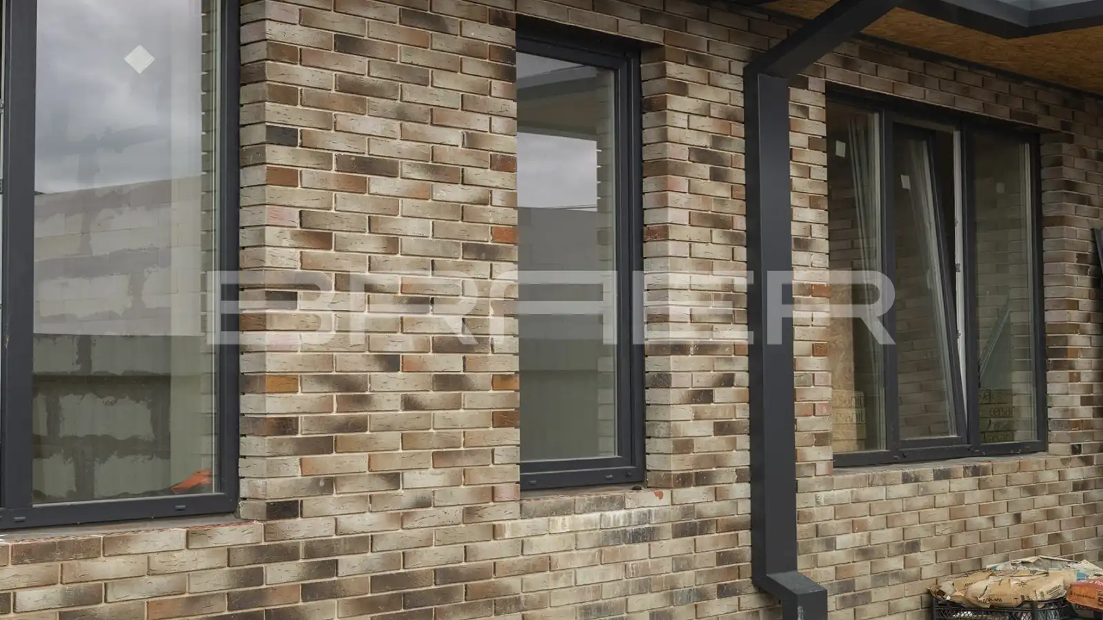 Облицовочный кирпич BRAER PRO 14.04.1 от производителя Braer сочетает в себе нежные бежевые тона с контрастными темными вкраплениями и серым пигментом. Этот материал создает теплую и уютную атмосферу, сохраняя при этом современный внешний вид.