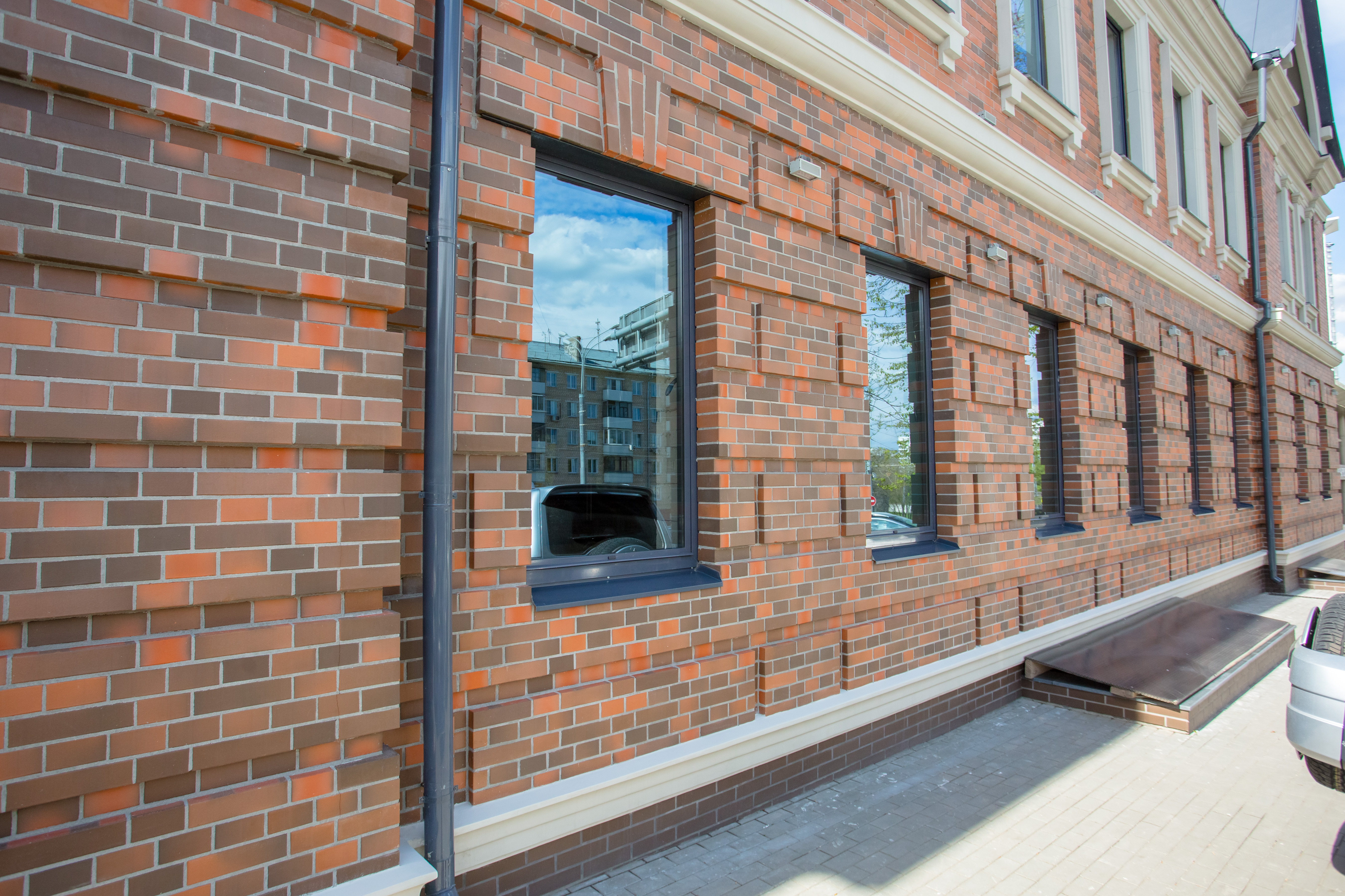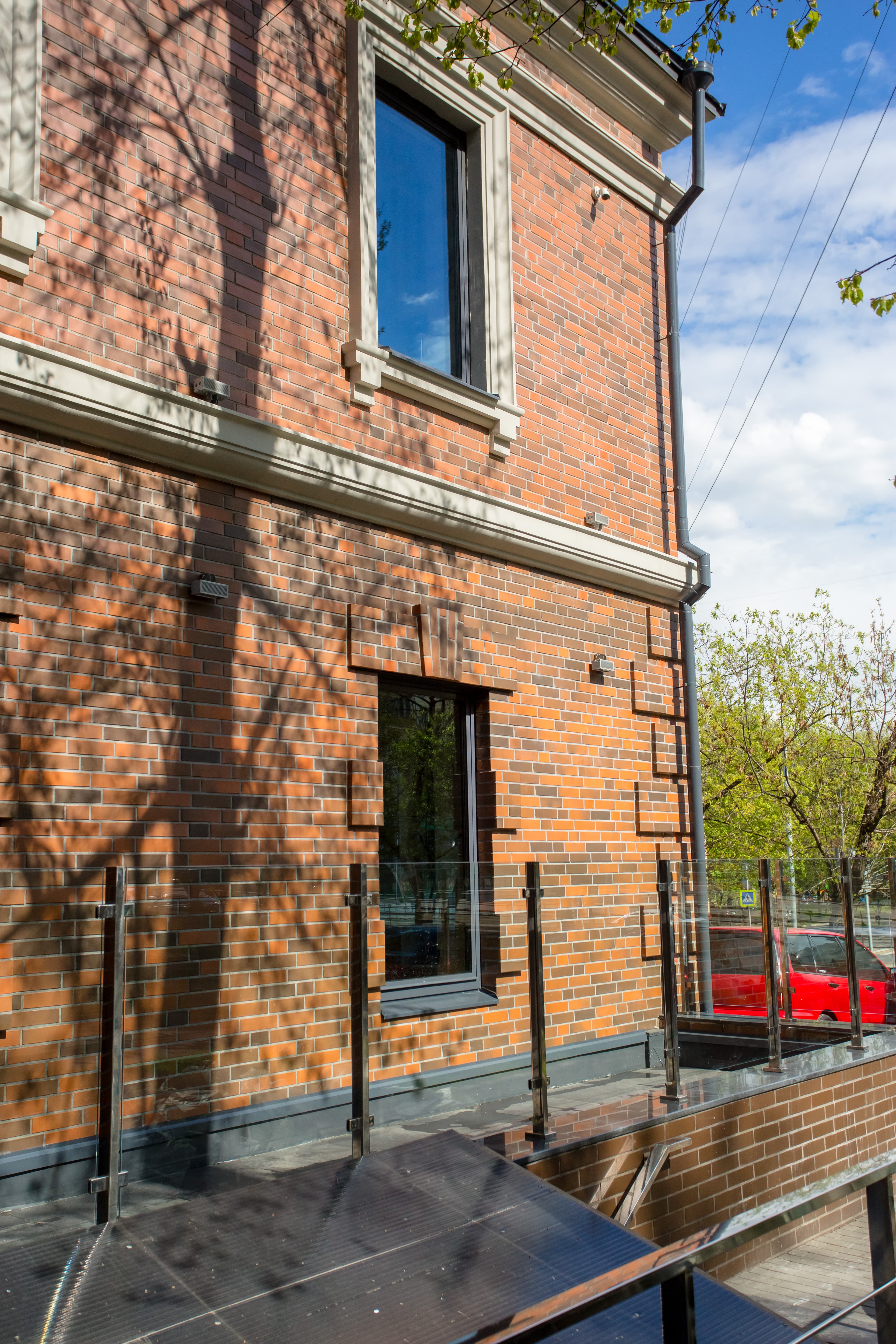Яркий и благородный цвет — красно-терракотовые переливы придают фасаду индивидуальность.